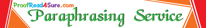 Paraphrasing is one of the four main services that we offer: proofreading, editing, paraphrasing, and rewriting. The paraphrasing option is useful for an original piece of writing that you want to alter, while keeping the meaning the same. If the original text is not your own work, then the paraphrased document will need to be correctly referenced. When you choose the paraphrasing service, the final document will be re-edited carefully. You can be sure that the quality of the writing will match your requirements and the work will be error free. Our writers are very experienced in undertaking this kind of work. We are confident that we will match or exceed your expectations when you choose our paraphrasing service.